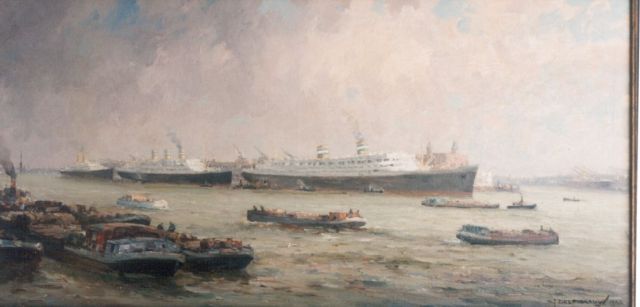 Gerard Delfgaauw | Passagiersschepen van de Holland Amerika Lijn, olieverf op doek, 60,0 x 120,5 cm, gesigneerd r.o. en gedateerd 1940
