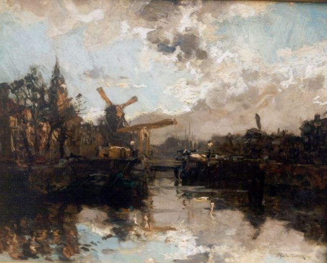 Johan Hendrik van Mastenbroek | Havengezicht, olieverf op doek, 28,7 x 35,7 cm, gesigneerd r.o. en gedateerd '09