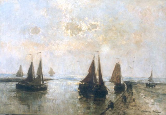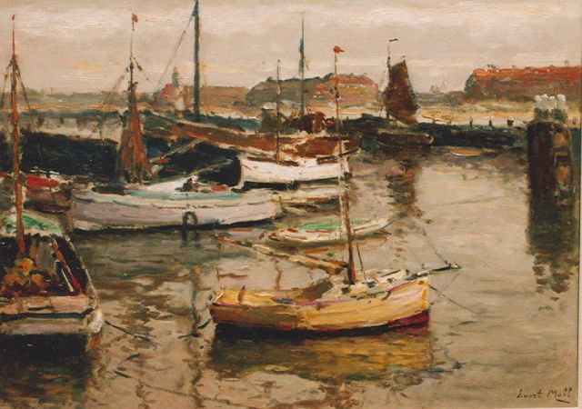 Evert Moll | Boten in de haven van Scheveningen, olieverf op doek, 50,2 x 70,4 cm, gesigneerd r.o.