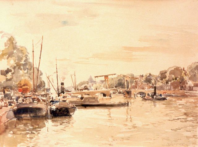 Cornelis Vreedenburgh | Gezicht op Magere brug Amsterdam, aquarel op papier, 32,0 x 46,0 cm, gesigneerd r.o.