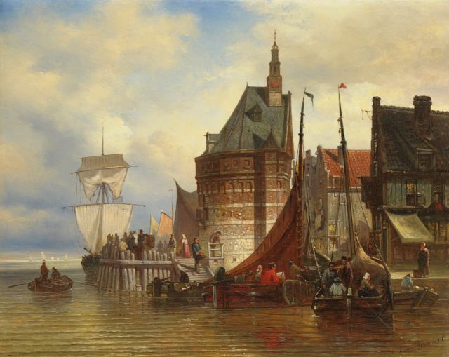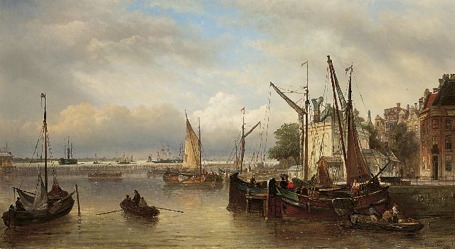 Elias Pieter van Bommel | Hollands havengezicht, olieverf op doek, 52,4 x 95,4 cm, gesigneerd r.o. en gedateerd 1881