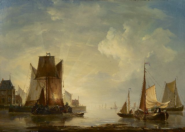 Louis Meijer | Bedrijvigheid aan een zeekade, olieverf op paneel, 46,8 x 61,8 cm, gesigneerd l.o. en gedateerd 1841