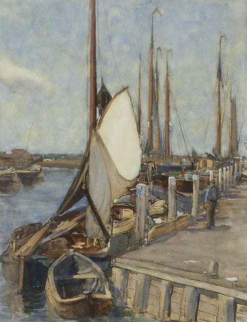 Floris Arntzenius | Afgemeerde vissersboten in de haven van Elburg, aquarel op papier, 56,9 x 43,5 cm, gesigneerd r.o.
