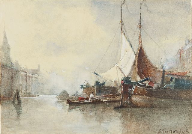 Johan Hendrik van Mastenbroek | Afgemeerde schepen in de Leuvehaven, Rotterdam, aquarel op papier, 38,5 x 53,3 cm, gesigneerd r.o. en gedateerd 189[8?]