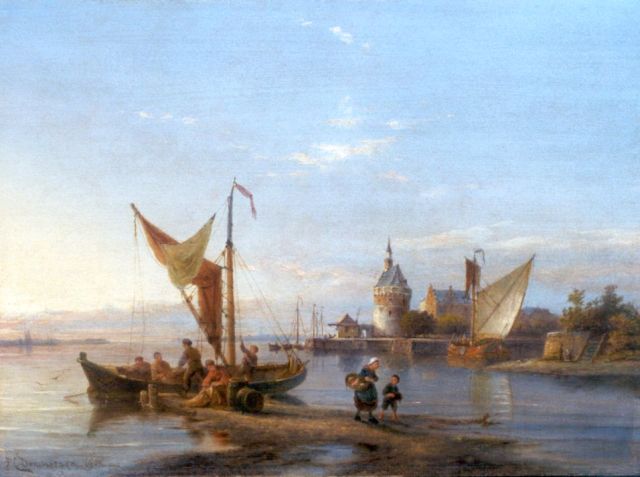 Hermanus Koekkoek jr. | Havengezicht met molen, olieverf op doek, 45,8 x 61,1 cm, gesigneerd r.o. met pseudoniem 'J. van Couver'