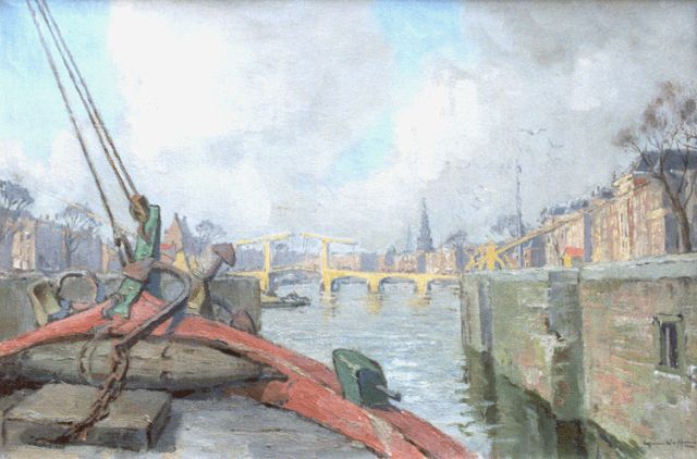 Gerrit van Duffelen | Gezicht op de Magere Brug vanaf een boot op de Amstel, olieverf op doek, 40,8 x 60,5 cm, gesigneerd r.o. en te dateren ca 1946