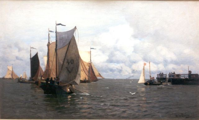 Gerard Koekkoek | Uitvarende botter, Marken, olieverf op doek, 37,1 x 59,1 cm, gesigneerd r.o. en gedateerd 1889