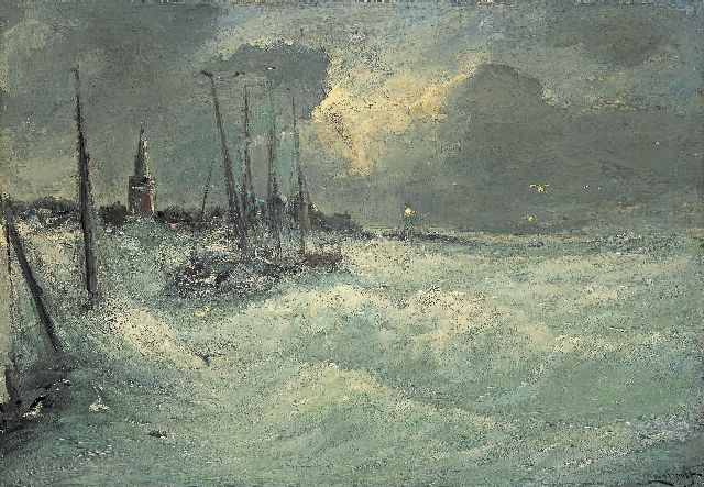 Louis Apol | Haven bij storm, olieverf op doek, 55,8 x 80,0 cm, gesigneerd r.o.