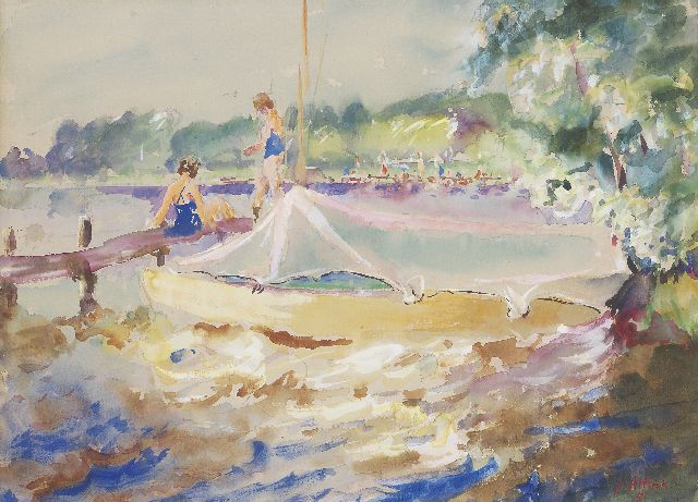 Jan van der Zee | Jachthaven Visser aan het Paterswoldsemeer, gouache op papier, 51,0 x 65,0 cm, gesigneerd r.b. en gedateerd '48