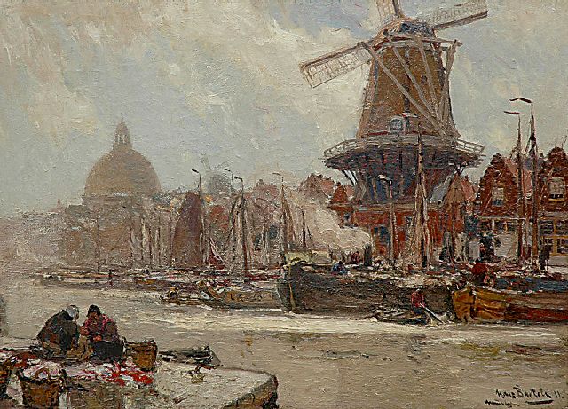 Hobbe Smith | Schepen, afgemeerd voor een molen, olieverf op doek, 48,2 x 38,8 cm, gesigneerd l.o.