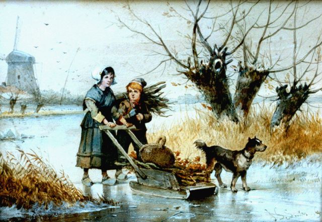 Johan Hendrik Kaemmerer | IJspret, olieverf op doek, 24,2 x 30,3 cm, gesigneerd r.o.