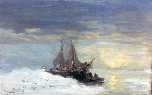 Louis Apol | Schepen bij Spitsbergen, olieverf op doek op board, 30,5 x 47,5 cm, gesigneerd l.o.