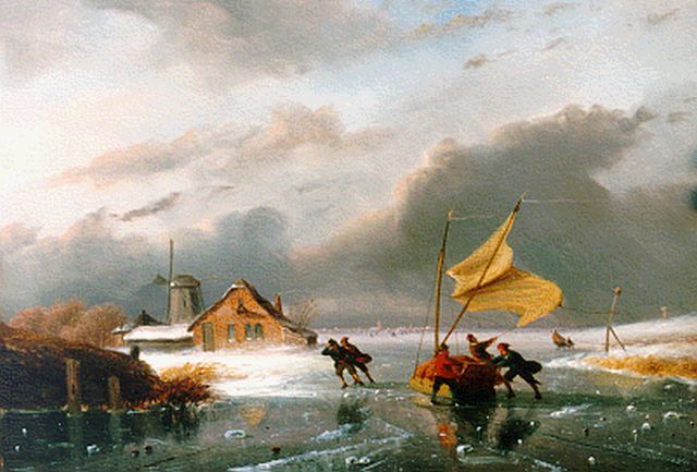 Lodewijk Johannes Kleijn | Hollands ijsvermaak, olieverf op paneel, 44,2 x 55,1 cm, gesigneerd r.o.