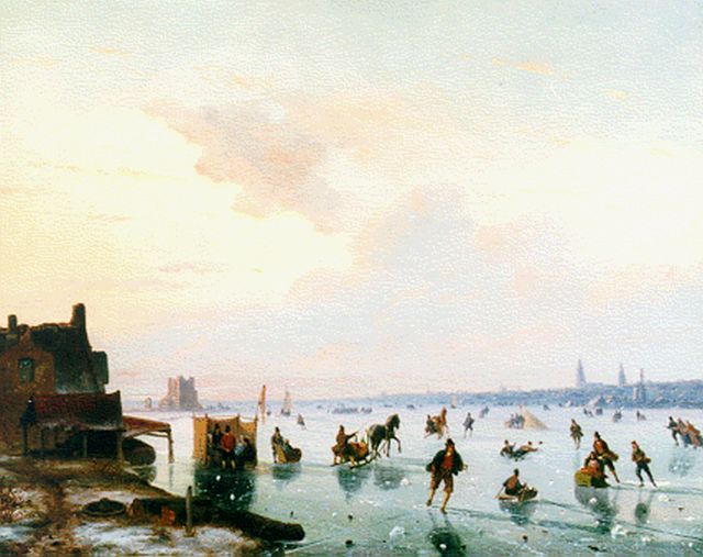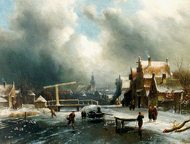 Charles Leickert | Levendig wintergezicht met schaatsers, olieverf op doek, 45,4 x 61,3 cm, gesigneerd l.o.