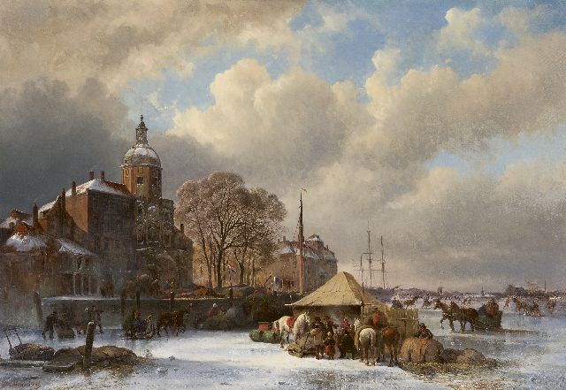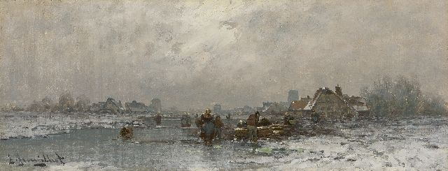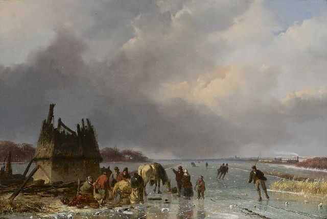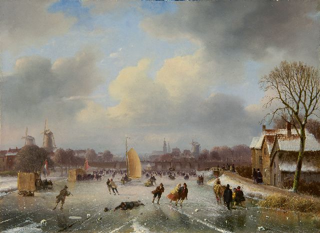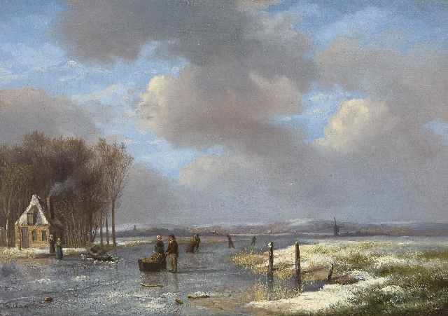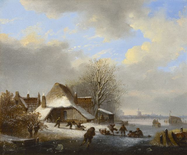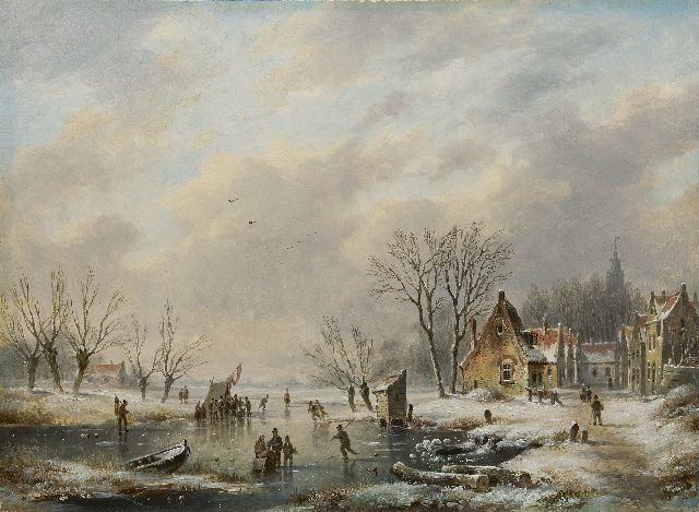 Lodewijk Johannes Kleijn | Winterlandschap met ijsvermaak, olieverf op paneel, 53,8 x 80,7 cm