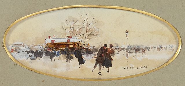 Luigi Loir | Schaatsers in het Bois de Boulogne, potlood, inkt, aquarel en gouache op papier, 3,8 x 9,3 cm, gesigneerd r.o.
