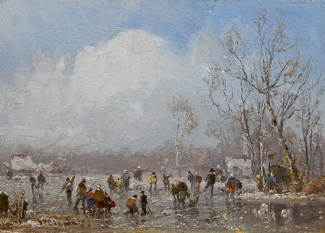 Adolf Stademann | IJsvermaak, olieverf op schildersboard, 17,0 x 23,3 cm, gesigneerd l.o.