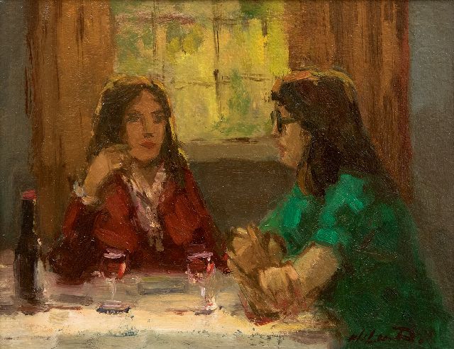 Herbert Fiedler | Man en vrouw in een café, gouache op papier op board, 64,8 x 39,7 cm, gesigneerd r.o.