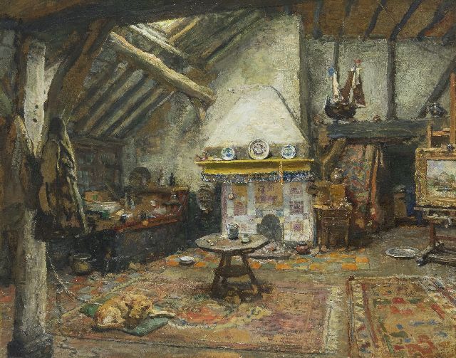 Arthur Briët | Het atelier van de schilder Frans Langeveld, olieverf op papier op paneel, 35,2 x 43,7 cm, gesigneerd r.o.