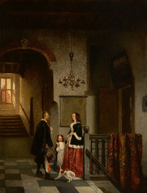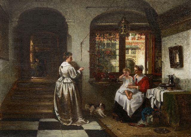 Johannes Anthonie Balthasar Stroebel | Oudhollands interieur met figuren, olieverf op doek, 46,2 x 61,6 cm, gesigneerd l.o.