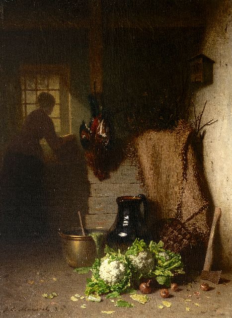 Johannes Masurel | In de schuur, olieverf op doek, 56,2 x 41,7 cm, gesigneerd l.o. en zonder lijst