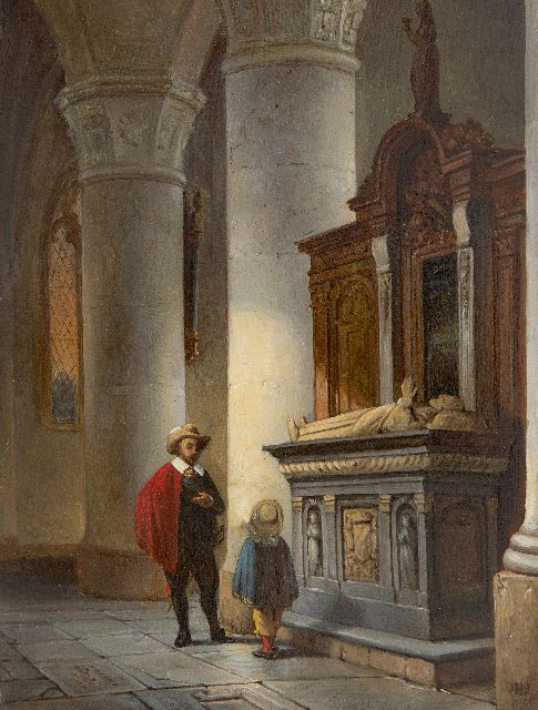 Gillis Haanen | Vader en zoon in een kerkinterieur, olieverf op paneel, 21,7 x 16,6 cm, gesigneerd r.o. met initialen