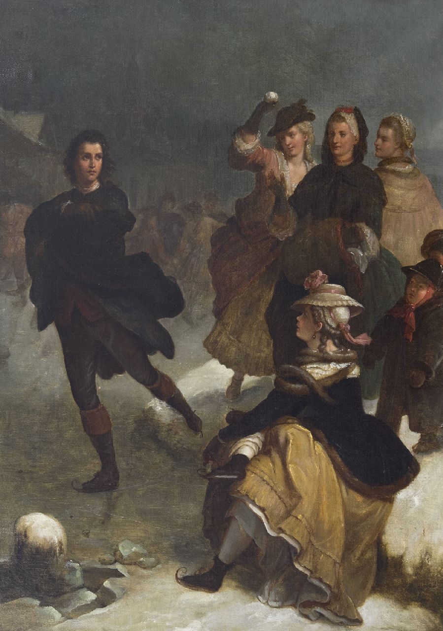 Duitse School (naar Wilhelm von Kaulbach) | Goethe als schaatsenrijder op de Main bij Frankfurt, olieverf op doek, 63,8 x 46,0 cm, te dateren ca. 1870