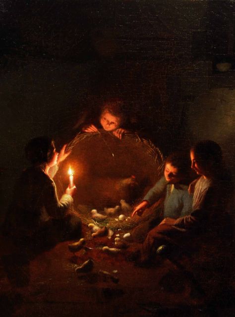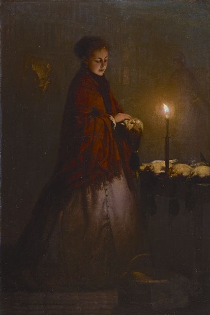 Johannes Rosierse | Een klein wonder bij kaarslicht, olieverf op doek, 36,0 x 27,3 cm, gesigneerd r.o.