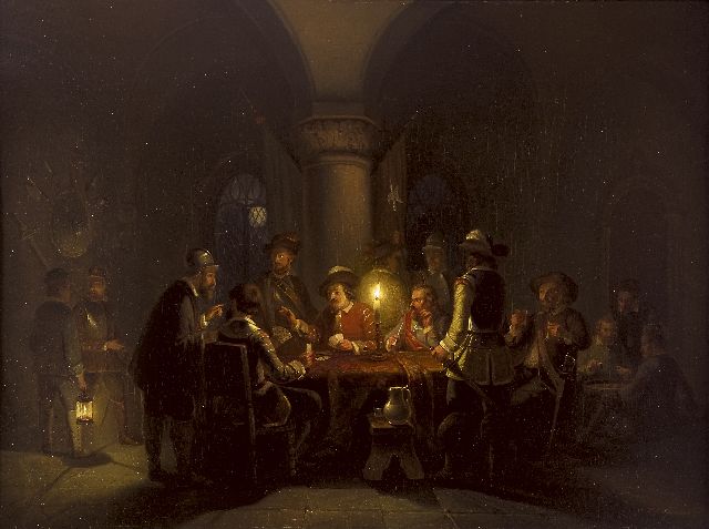 Pieter Gerardus Sjamaar | Kaartspel en dobbelen, olieverf op paneel, 43,6 x 57,8 cm, gesigneerd r.o.