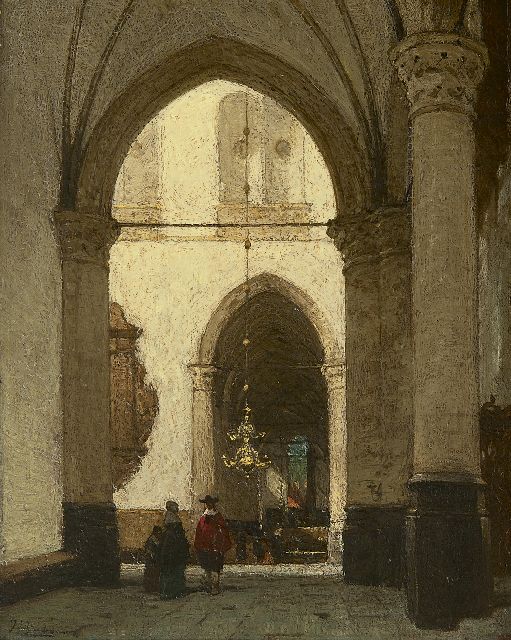 Jan Jakob Schenkel | In de Domkerk te Utrecht, olieverf op paneel, 22,2 x 15,2 cm, gesigneerd l.o.