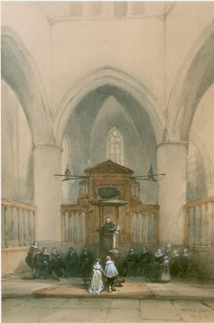 Johannes Bosboom | De huwelijksinzegening, aquarel op papier, 28,2 x 20,5 cm, gesigneerd l.o.