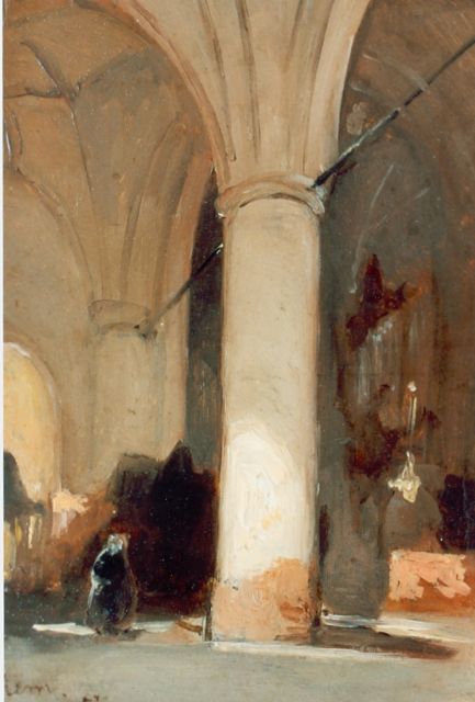 Johannes Bosboom | Kerkinterieur, olieverf op paneel, 23,0 x 15,0 cm