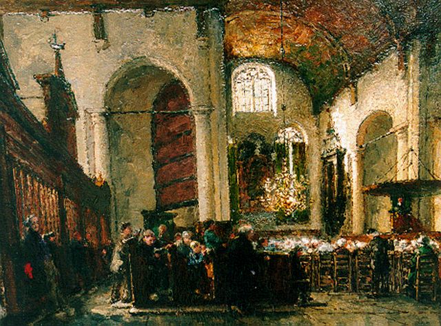 Richard Bisschop | Kerkdienst in de kerk van Maassluis, olieverf op paneel, 45,7 x 56,0 cm, gesigneerd l.o.