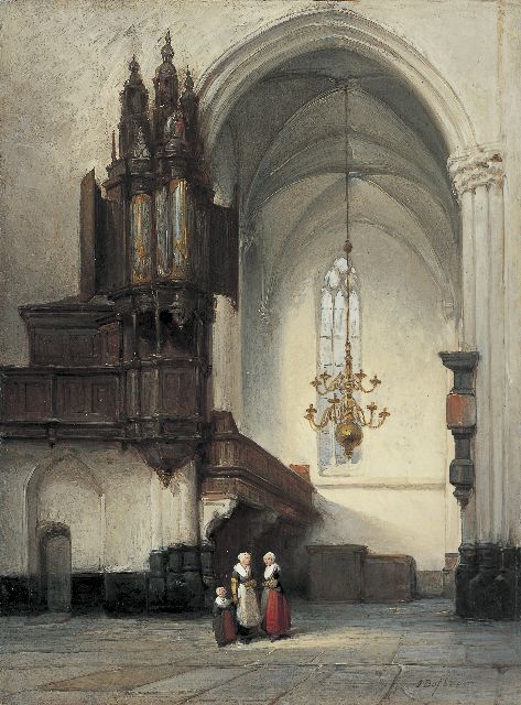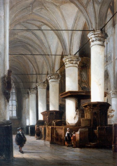 Johannes Bosboom | Interieur van de Nieuwe Kerk te Delft, olieverf op paneel, 70,3 x 55,8 cm, gesigneerd l.o.