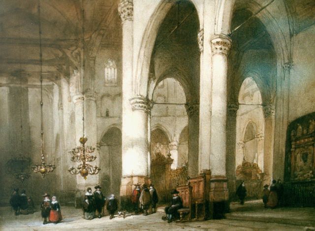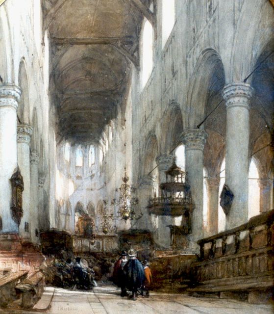 Johannes Bosboom | Interieur van de Bakenesserkerk te Haarlem, aquarel op papier, 20,0 x 27,8 cm, gesigneerd l.o.