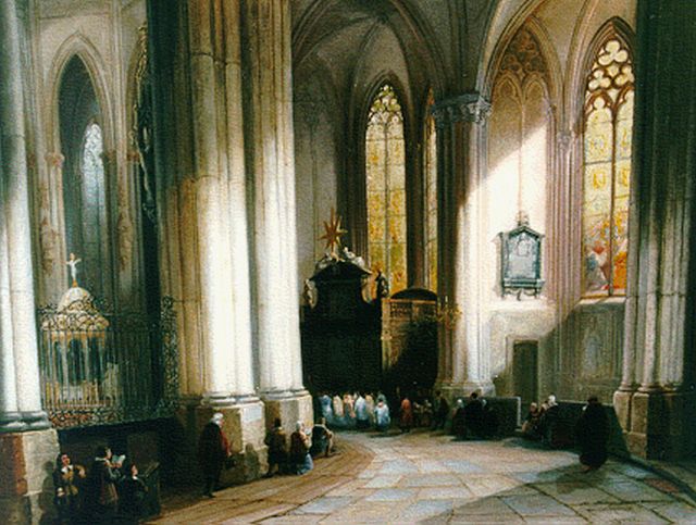 Jules Victor Genisson | Interieur van de St.-Gummarus te Lier, olieverf op doek, 75,2 x 64,4 cm, gesigneerd l.o. en gedateerd 1852