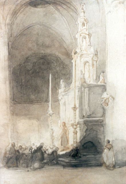 Johannes Bosboom | Bij het altaar, aquarel op papier, 14,5 x 10,5 cm, gesigneerd l.o.