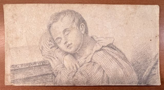 Gillis Meijer | Slapend kind, potlood op papier, 7,3 x 14,0 cm, gesigneerd l.o. en gedateerd 1837