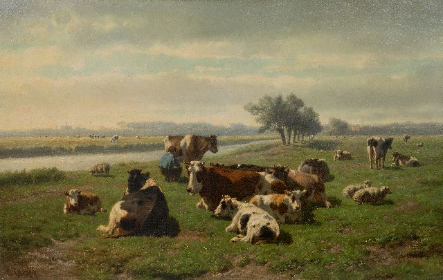 Jan de Haas | Jonge herderin met haar koeien, olieverf op doek, 88,3 x 66,6 cm, gesigneerd r.o.