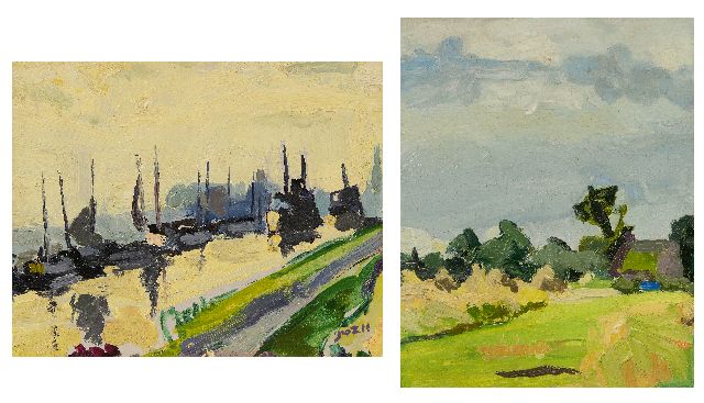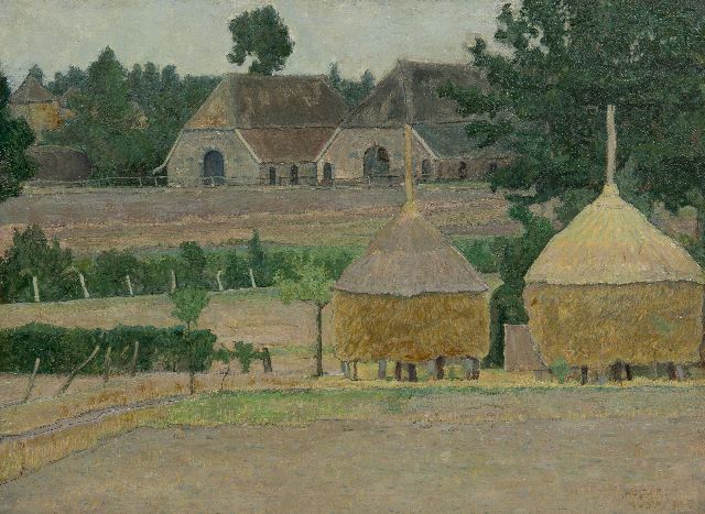 Dirk Koning | Landschap met hooiberg, olieverf op board, 61,7 x 72,7 cm, gesigneerd r.o. en gedateerd 1928