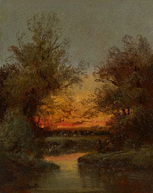 Johan Frederik Cornelis Scherrewitz | Pinken aan de waterkant, olieverf op doek, 30,4 x 45,4 cm, gesigneerd r.o.