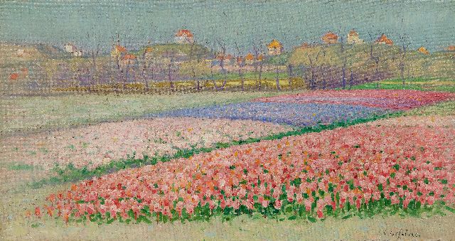 Anton Koster | Bollenvelden, olieverf op paneel, 35,0 x 24,9 cm, gesigneerd l.o.