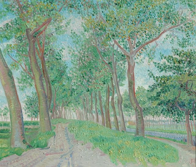 Jakob Nieweg | Landweg met bomen, olieverf op doek, 60,0 x 70,5 cm, gesigneerd r.o. met monogram en gedateerd 1915
