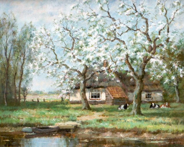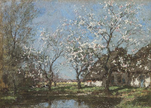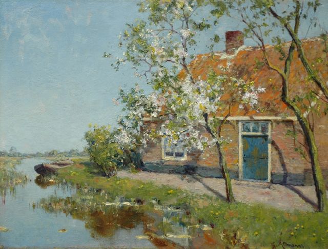 Gerard Altmann | Boerderij en bloesemboom aan de poldervaart, olieverf op doek, 30,7 x 40,9 cm, gesigneerd r.o.