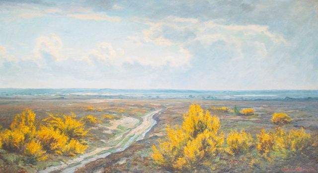 Johan Meijer | Bloeiende brem, olieverf op doek, 45,3 x 84,8 cm, gesigneerd r.o.