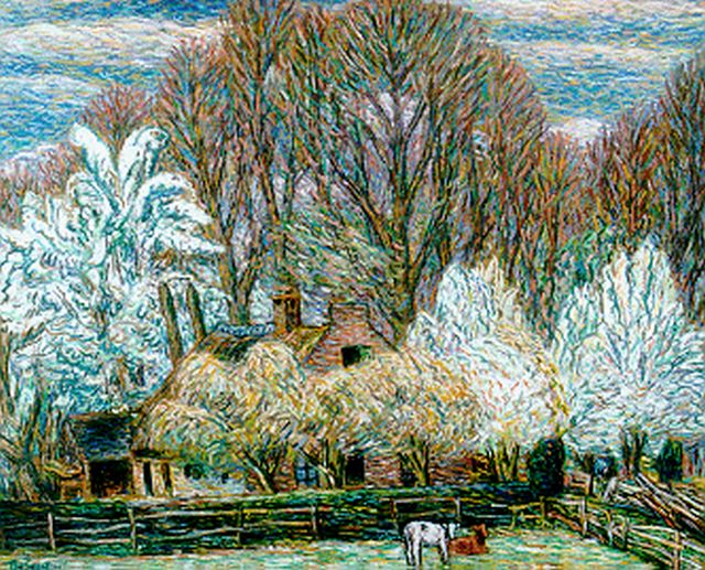 Leo Gestel | Voorjaar: boerderij te Eemnes, pastel op papier, 61,0 x 76,5 cm, gesigneerd l.o. en gedateerd '39