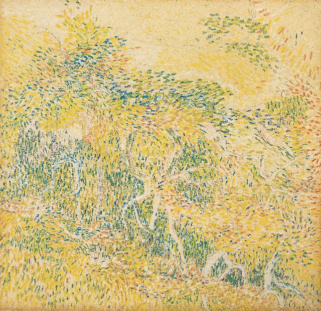 Mies Elout-Drabbe | Boomgaard te Domburg, potlood en pastel op papier, 21,2 x 22,2 cm
