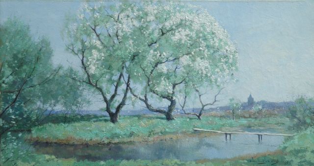 Jakob Nieweg | Bloesembomen in de Betuwe, olieverf op doek, 60,5 x 70,4 cm, gesigneerd r.o. met monogram en gedateerd 1931