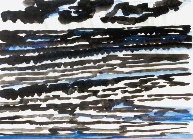 Johannes Hermanus Koekkoek | Dijkdoorbraak tijdens de Zeeuwse overstroming op 14 en 15 januari 1808, pen en gewassen inkt op papier, 22,5 x 38,3 cm