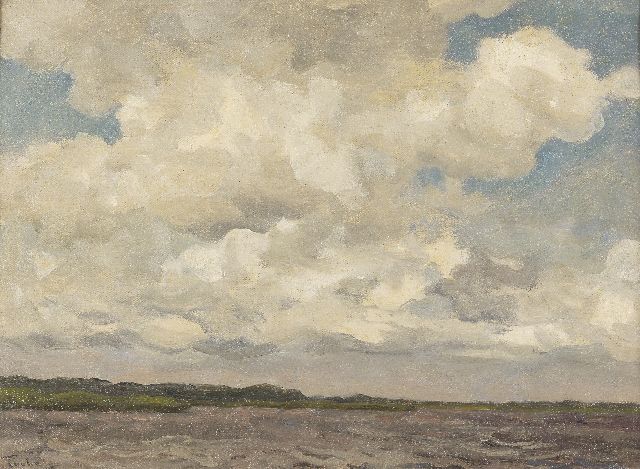 Willem Bastiaan Tholen | Wolkenlucht, olieverf op doek op schildersboard, 30,3 x 39,9 cm, gesigneerd l.o.